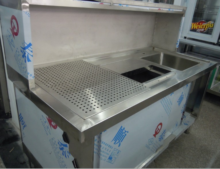 INFORMATION冷藏組合操作臺:這臺設備包含了操作臺、料架、保溫茶桶及冷藏柜,是一款綜合為一體的前場操作設備,既節省空間又方便操作。